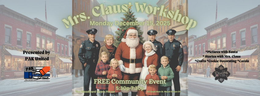 PAK United, in partnership with The Woodward Opera House, is excited to announce the return of the beloved Mrs. Claus Workshop for its second year. This free, family-friendly community event will take place on Monday, December 15, 2025, from 5:30 PM to 7:30 PM at The Woodward Opera House.